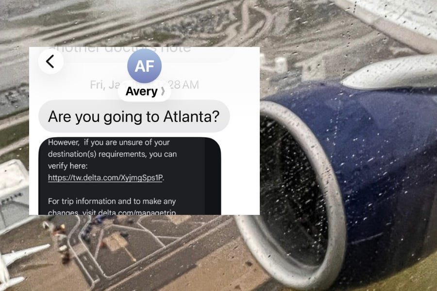 He shared a screenshot of a Delta message about our flight change.