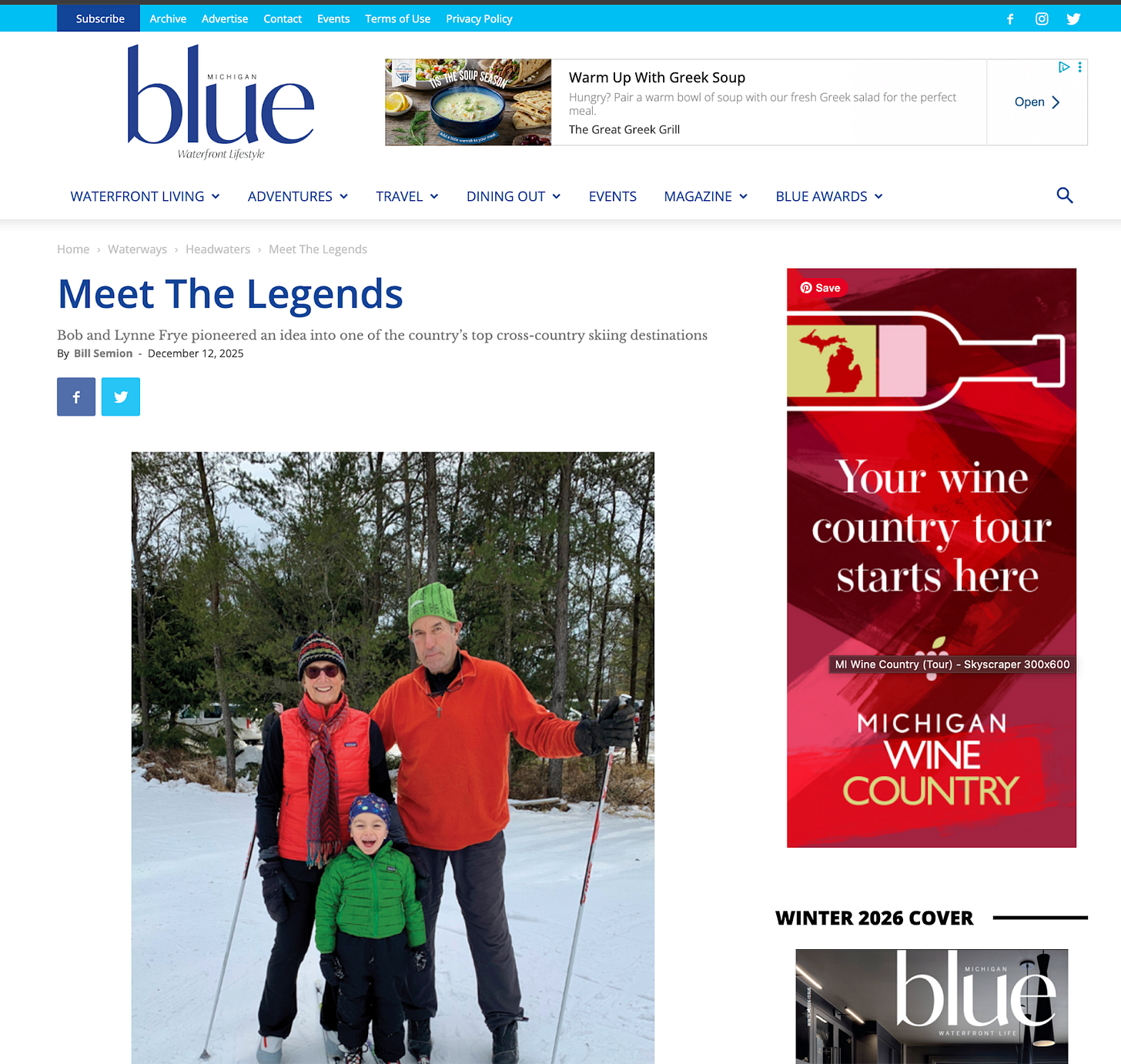 Finally, I learned about the Cross Country Ski Headquarters located in Higgins Lake through an article on Michigan Blue by Bill Semion. They can outfit you with skis, and they have 11 miles of groomed trails.