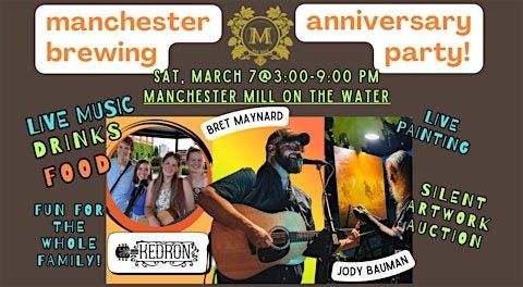 Manchester Brewing Anniversary Party at Manchester Mill on the Water on Mar 7