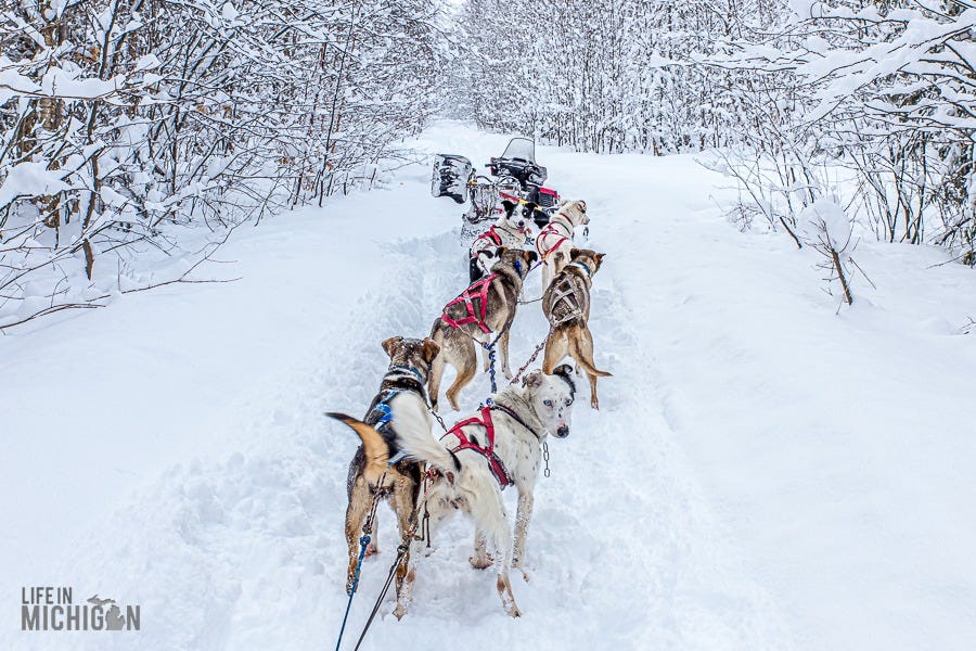 That dream of running with the pack became a reality back in 2014 when we headed up to Marquette over the Christmas break for some winter fun. We snowshoed at Pictured Rocks, received an adventure map from Down Wind Sports for the Yellow Dog River, and came down with the flu just in time for New Year’s. Yet in the midst of this, we had one of those unforgettable experiences that lasts a lifetime.
