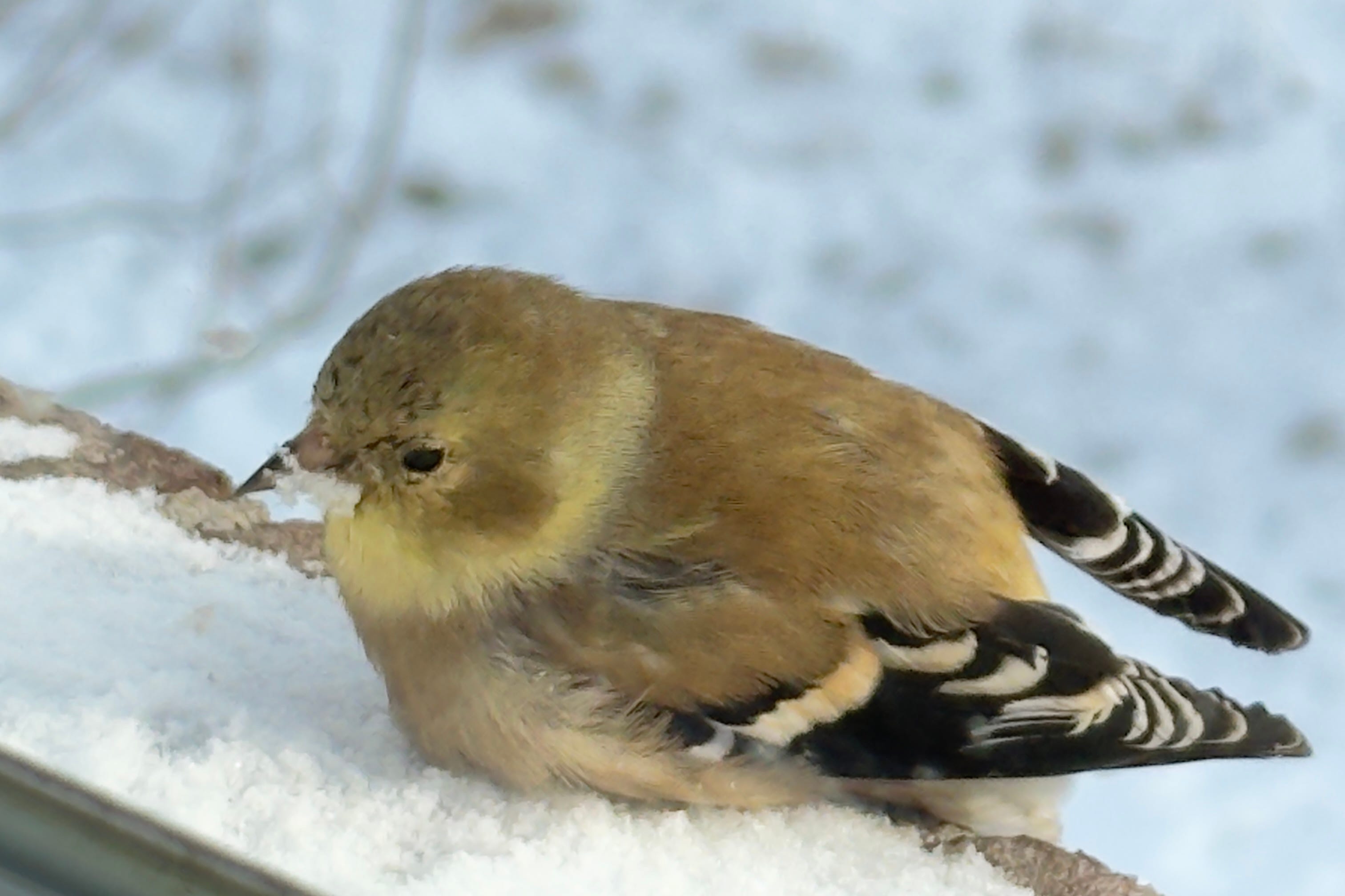 Poor Legless. That’s what I’ve named the American Goldfinch that often lies on the windowsill, as if sunbathing by my window in my Cozy Nook. It flies with a slight list to one side and can’t perch on the bird feeder, but plunks itself in the middle of it. None of the other birds likes Legless.