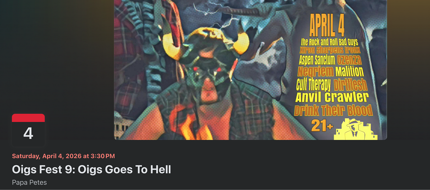Come hang out with me and other heavy music fans for Oigs Fest 9 in Lansing on Apr 4