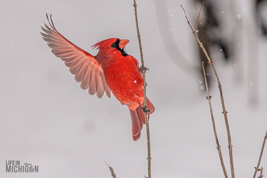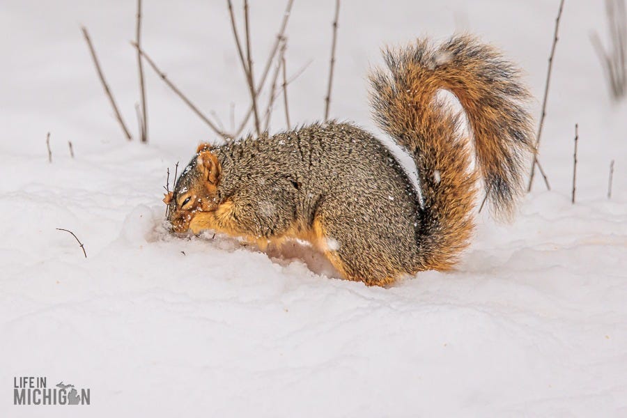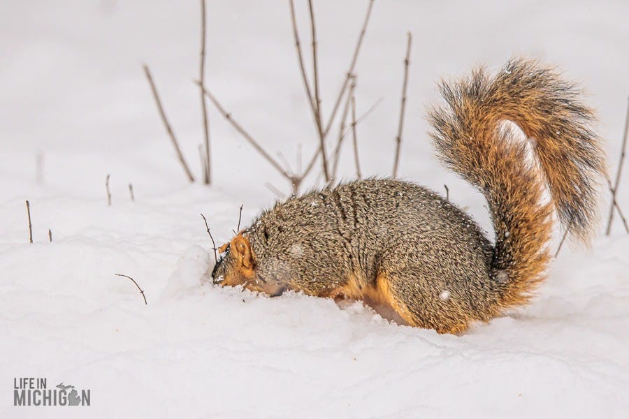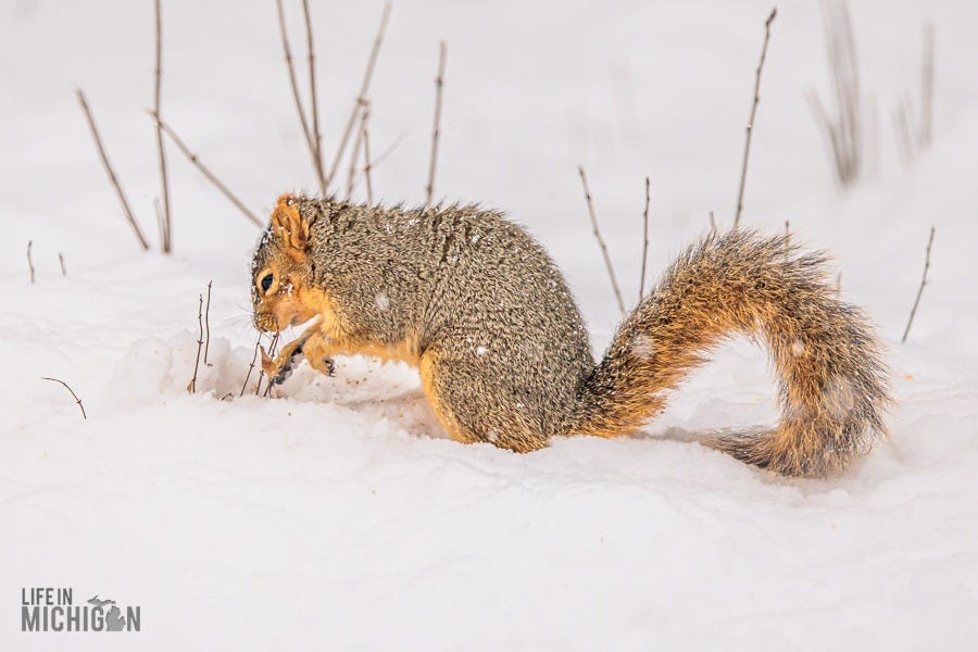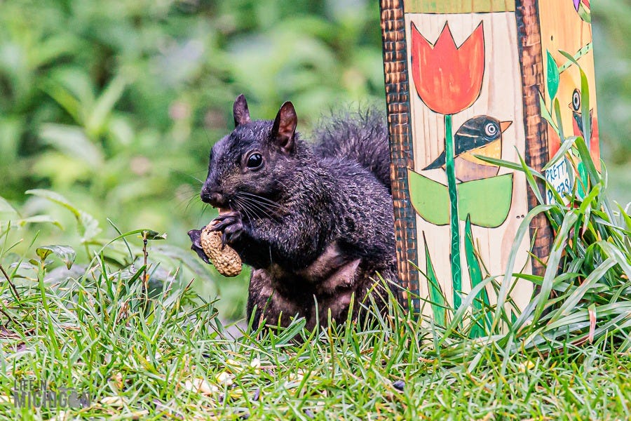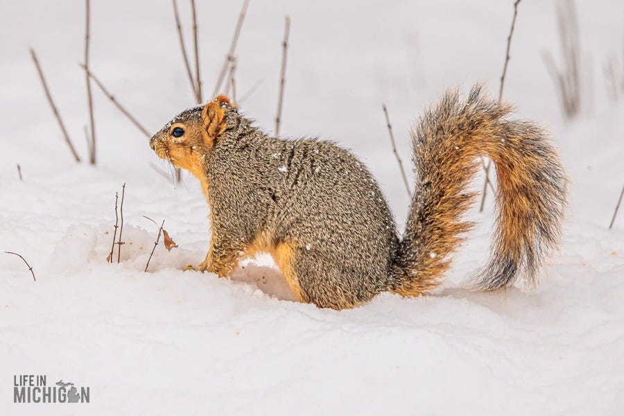 Happy New Year, and welcome to another year of the Life In Michigan Sunday Sip newsletter. If you’ve been reading Sunday Sip for a while, you know we’re pretty enamored with our backyard friends. Just last week, Brenda shared our horror of witnessing Karen, the black squirrel, encounter our sparrow deterrent system (fishing line and washers). Anyway, I’ve been seeing a few photographic journal-type deals here on Substack. You know, the ones where someone takes you on a journey or tells a story with a series of photos and perhaps a few words here and there to set the stage. Well, with that inspiration, I thought I’d share a retrospective on our backyard pals.