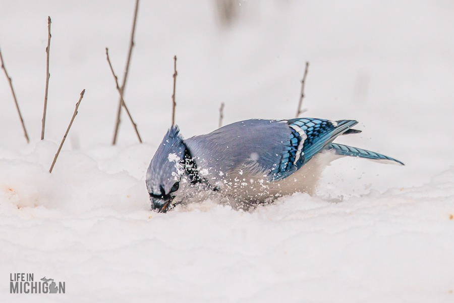 In an attempt to invite the crows that fly overhead to and from wherever they spend their day, we’ve started to put our corn and peanuts along with the usual birdseed mix. Let me tell you, Avery, Gary, and the Blue Jays have never been happier with this decision. I’ve yet to capture it on camera, but both Avery and Gary will grab a nut, dash a few yards away, and then carefully bury it. Avery goes a step further by patting down the grass over the nut. As if thinking to himself, “Now that is a fine burial!” as he gives the ground another satisfying pat.