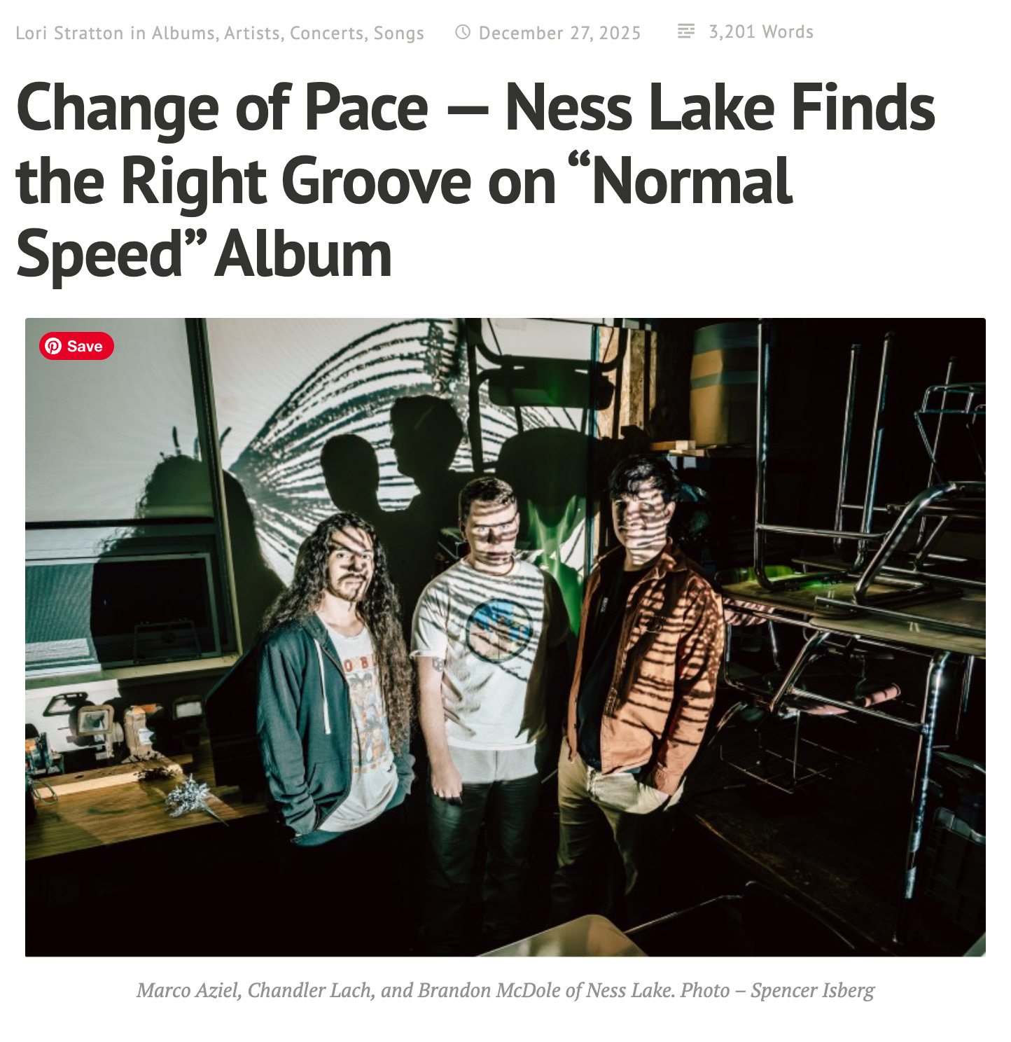 Lori Stratton has an excellent interview with local indie rock band Ness Lake, which includes cuts from their new album called Normal Speed.
