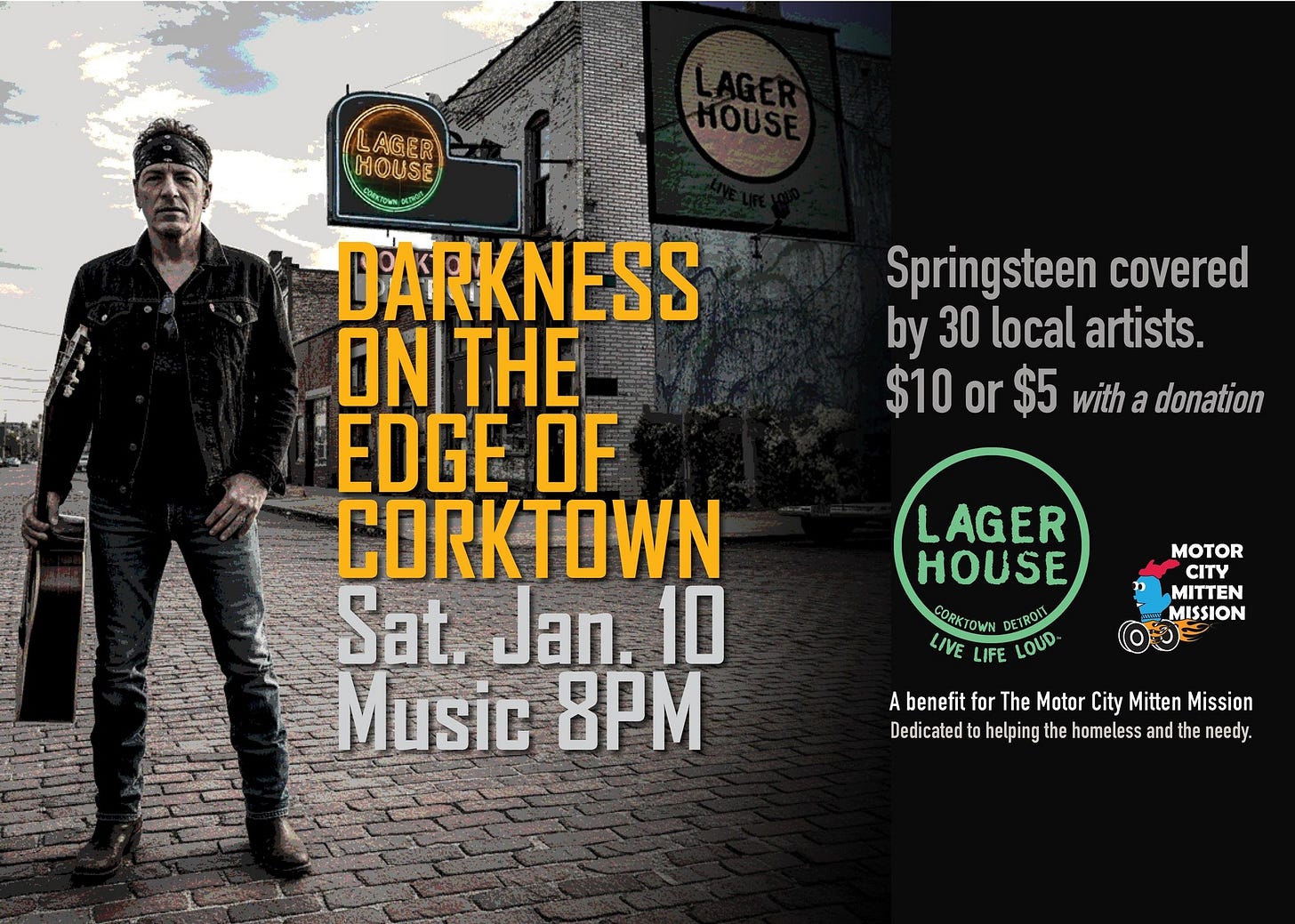 Over 30 musical acts pay tribute to Bruce Springsteen with all proceeds benefiting Motor City Mitten Mission.