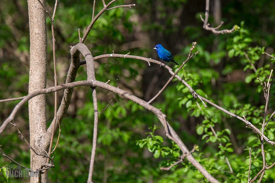 The forest offered homes for a variety of birds, and Brenda’s birdfeeders drew them in. One time, an Indigo Bunting made a visit. Talk about striking bird watching gold!! I’m sure the bird nerd excitement meter was solidly pegged at eleven. Ok sure, the nuthatch is pretty cool, but wow, a bunting!!