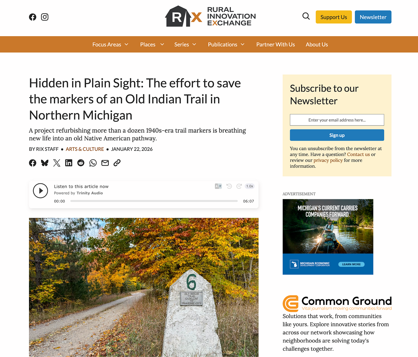 Rural Innovation Exchange has a great story on restoration efforts for trail markers on the Old Indian Trail between Cadillac and Traverse City.