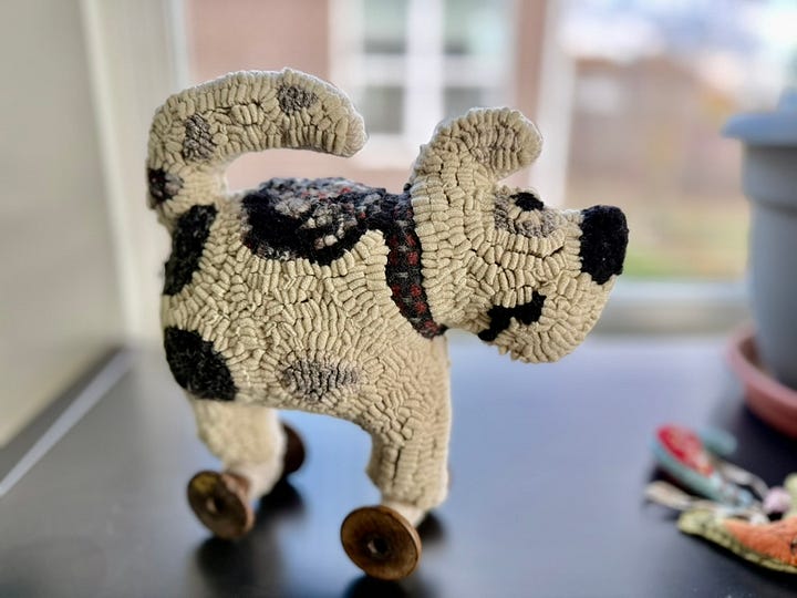 I finished Fred! He has been scampering about. Do you like making art with fiber? Send me a message; we need to connect.